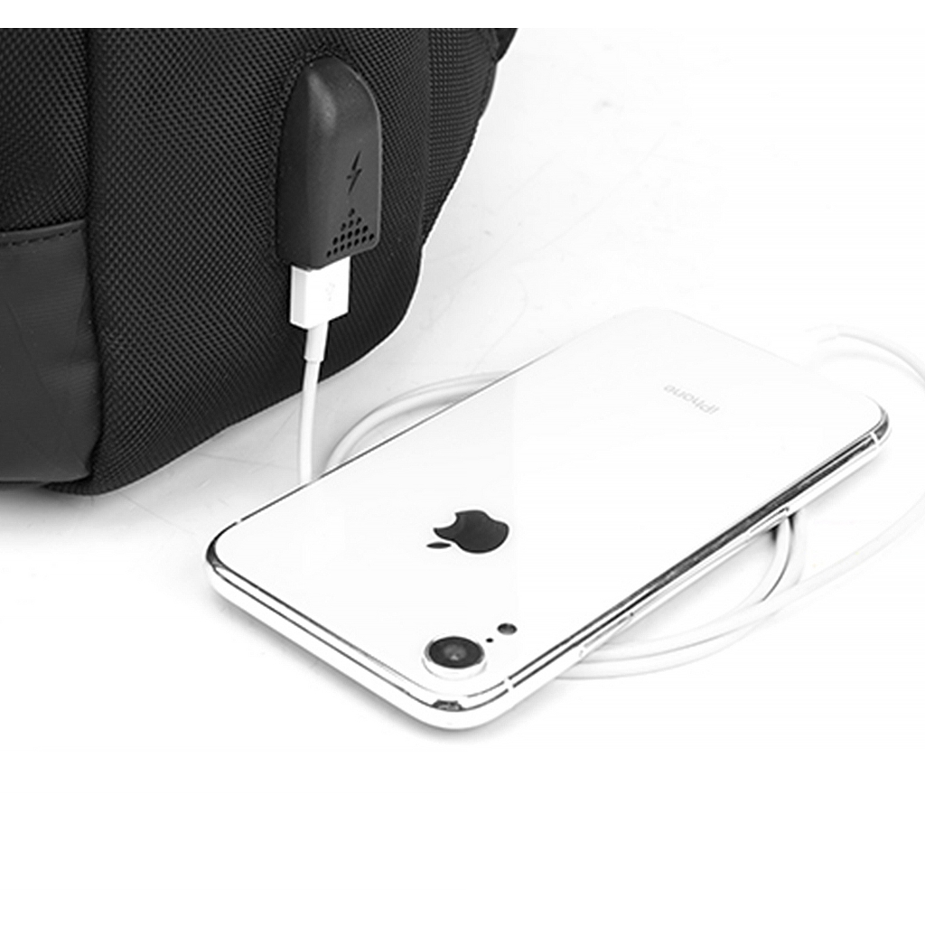 Рюкзак з відділенням для ноутбука 15,6” та відділенням для ipad. Тканина – водонепроникний 100% поліестер + PU. Він також має USB Port, великий відділ та різні кишені-органайзери, кишеню Anti theft (RFID), приховану кишеню на лямці (для карток). На задній спинці є ремінь для кріплення до валізи.